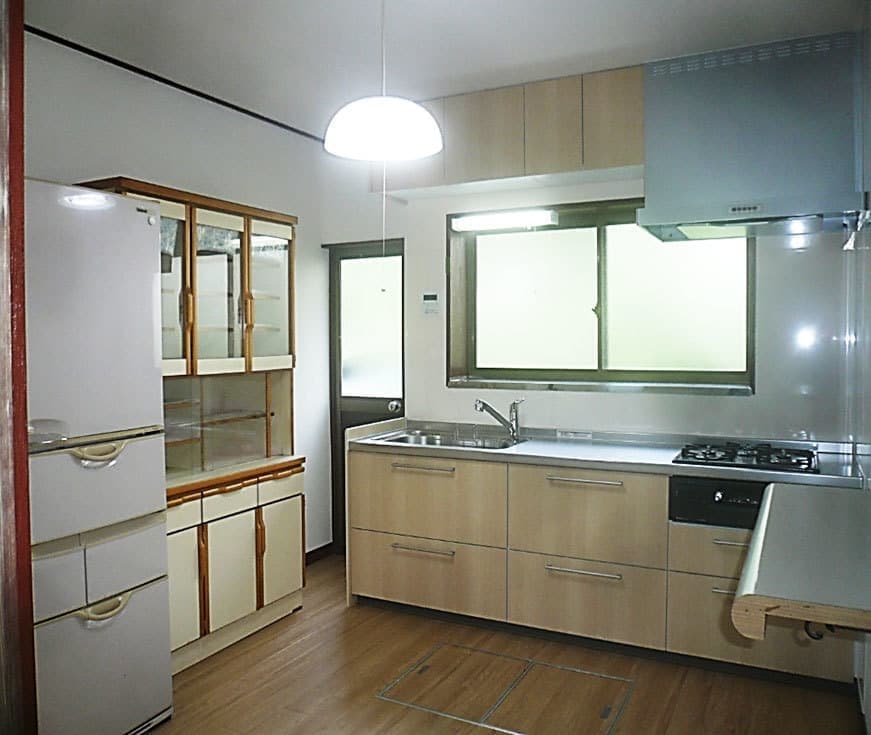 古い旧家の一角にあるDK(12帖スペース)を、かなり劣化したキッチンに加え、高齢になった奥様の安全面を考慮し、IHを希望とのことでリフォームを検討されました。
