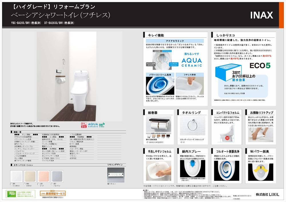 HOME | 水回りパッケージ商品 | ハイグレード 水回りリフォーム【スタンダードプラン】 トイレリフォーム LIXIL ベーシアシャワートイレ (YBCタイプ)工事期間の目安 洗面化粧台の入れ替え 約1日 メーカー標準価格 ¥212,500(税抜)商品提供価格 ¥ 88,500(税抜)標準工事費 ¥ 30,000(税抜) 基本合計価格 ¥118,500 (税込¥130,350) 表示金額は、目安の概算金額です。実際の工事価格に関しましては、現地調査後改めて詳細の見積をご提出させていただきます。詳しくは弊社担当スタッフまでお問い合わせください。 洗面台リフォーム LIXIL ビアラ (三面鏡タイプ)工事期間の目安 洗面化粧台の入れ替え 約1日 メーカー標準価格 ¥210,800(税抜)商品提供価格 ¥ 96,000(税抜)標準工事費 ¥ 30,000(税抜) 基本合計価格 ¥126,000 (税込¥138,600) 表示金額は、目安の概算金額です。実際の工事価格に関しましては、現地調査後改めて詳細の見積をご提出させていただきます。詳しくは弊社担当スタッフまでお問い合わせください お風呂リフォーム LIXIL アライズZタイプ (1坪タイプ)工事期間の目安 ユニットバスからユニットバスへの交換 約3日 在来型浴室からユニットバスへの交換 約7~10日 メーカー標準価格 ¥1,153,340(税抜)商品提供価格 ¥337,400(税抜)標準工事費(メーカー施工費込) ¥699,400(税抜) 基本合計価格 ¥1,036,800 (税込¥1,140,480) 表示金額は、目安の概算金額です。実際の工事価格に関しましては、現地調査後改めて詳細の見積をご提出させていただきます。詳しくは弊社担当スタッフまでお問い合わせください キッチンリフォーム LIXIL AS (I型2550タイプ)工事期間の目安 キッチンの入れ替え 約3日 メーカー標準価格 ¥1,221,800(税抜)商品提供価格 ¥480,500(税抜)標準工事費(メーカー施工費込) ¥330,800(税抜) 基本合計価格 ¥811,300 (税込¥892,430) 表示金額は、目安の概算金額です。実際の工事価格に関しましては、現地調査後改めて詳細の見積をご提出させていただきます。詳しくは弊社担当スタッフまでお問い合わせください。 関工務所 水回りリフォームパッケージ グレードによって3タイプご用意しました。ご興味のあるパッケージをご参考ください。 水回りリフォームの事例はこちら 関工務所のリフォームのメニュー 詳細はこちら 詳細はこちら 詳細はこちら 詳細はこちら 詳細はこちら 詳細はこちら