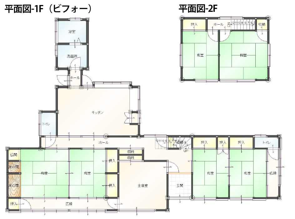 使わない部屋が多く、寒くて、段差も多く、お風呂や洗面、トイレは寝室から遠く動線がとても悪い、キッチンは離れていて北側の暗く寒い所にありました。